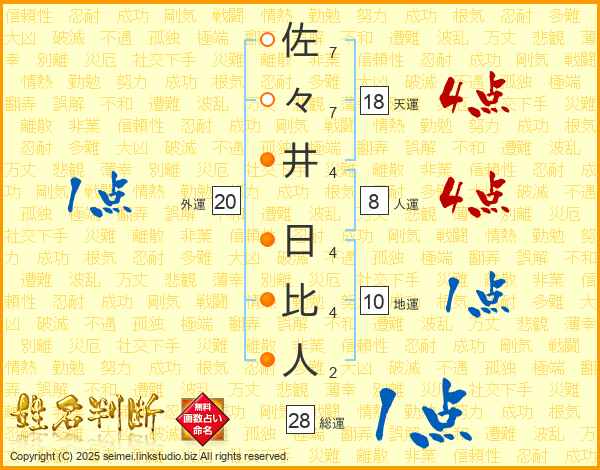 佐々井日比人さんの天運は18画の4点!