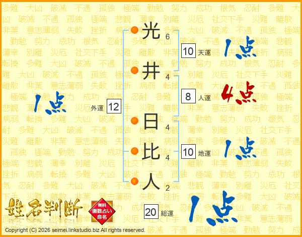光井日比人さんの総運は20画の1点!
