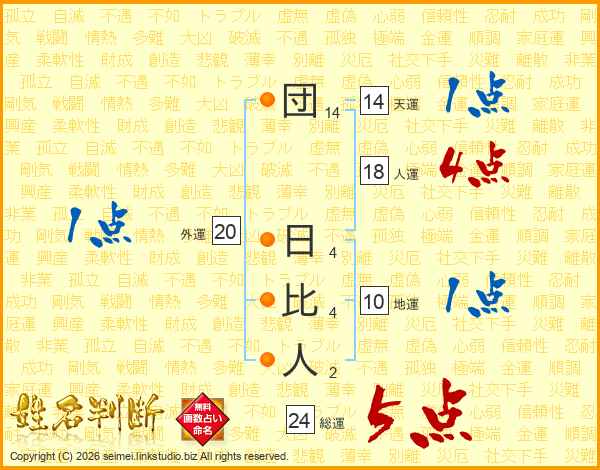 団日比人さんの総運は24画の5点!