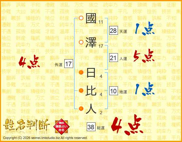 國澤日比人さんの総運は38画の4点!