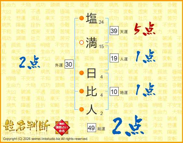 塩(24画)満(15画) 日(4画)比(4画)人(2画)
