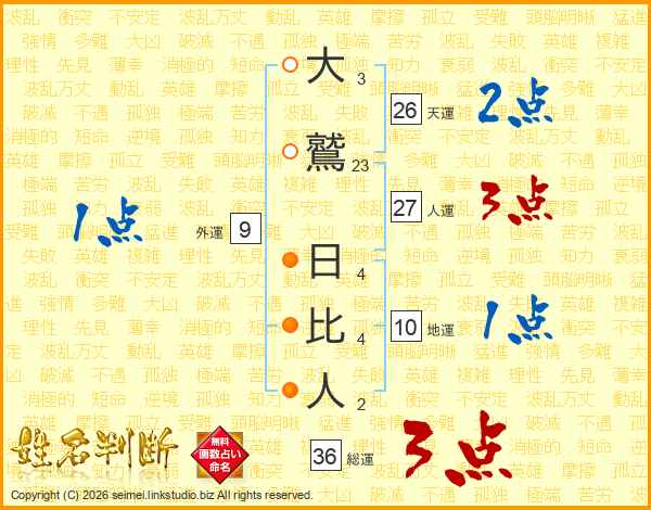 大鷲日比人さんの総運は36画の3点!