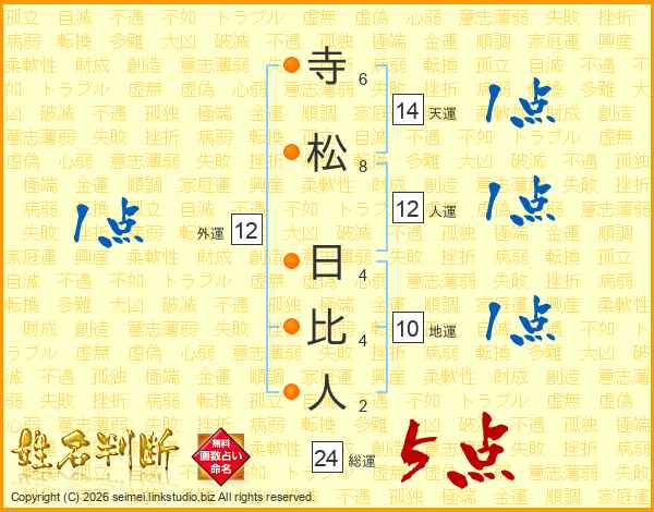 寺(6画)松(8画) 日(4画)比(4画)人(2画)