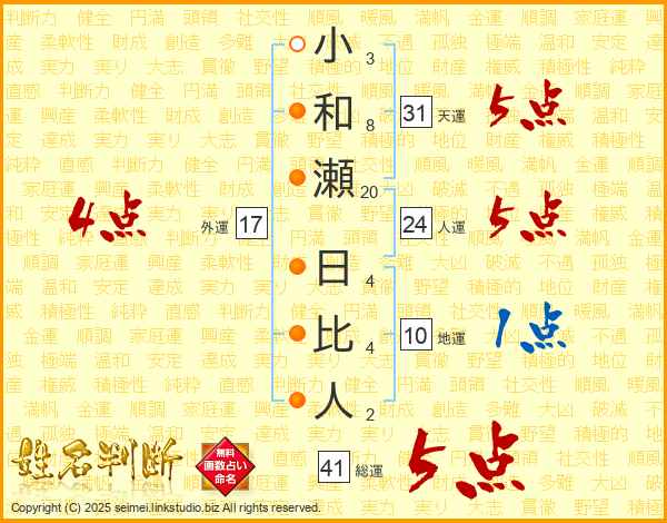 小和瀬日比人さんの総運は41画の5点!