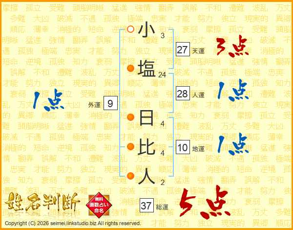 小塩日比人さんの総運は37画の5点!