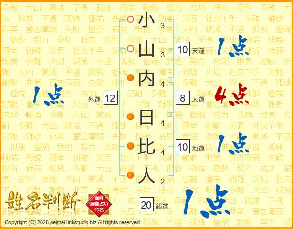小山内日比人さんの総運は20画の1点!