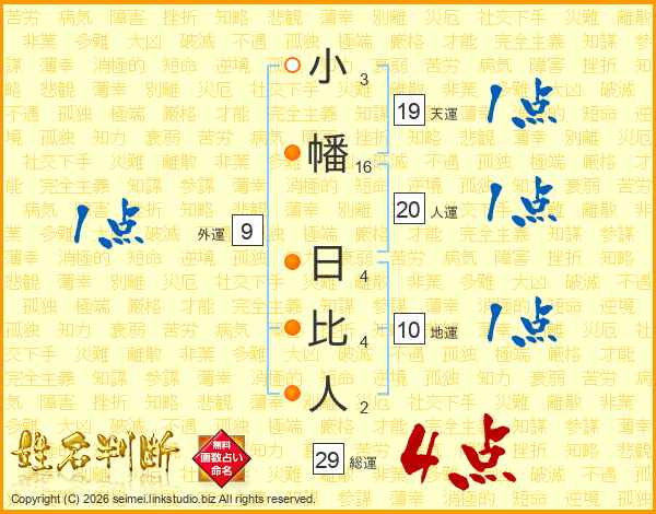 小幡日比人さんの総運は29画の4点!