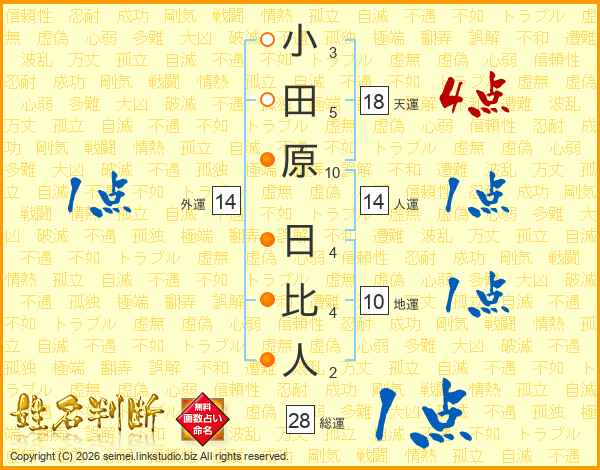 小(3画)田(5画)原(10画) 日(4画)比(4画)人(2画)