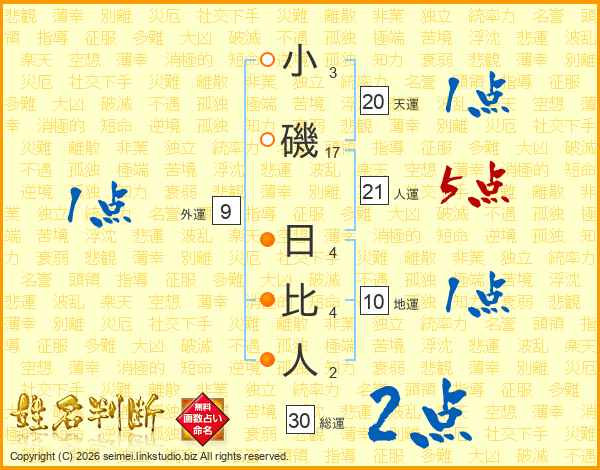 小磯日比人さんの人運は21画の5点!