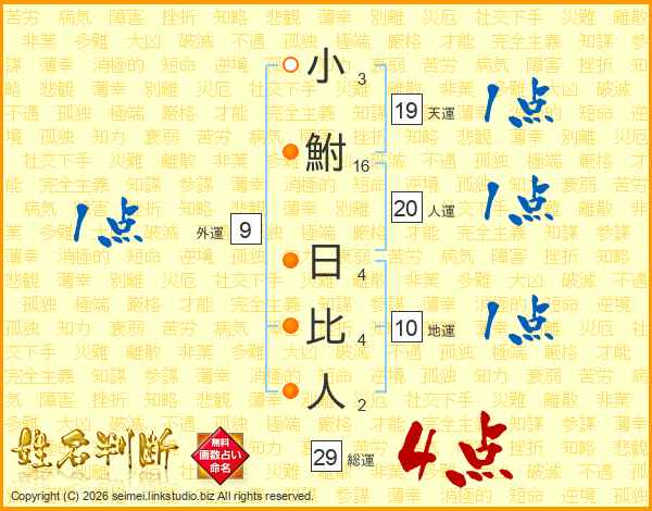 小(3画)鮒(16画) 日(4画)比(4画)人(2画)