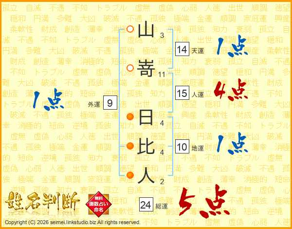 山嵜日比人さんの総運は24画の5点!