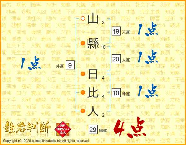 山(3画)縣(16画) 日(4画)比(4画)人(2画)