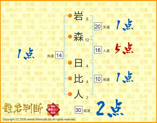 岩森日比人さんの天運は20画の1点!