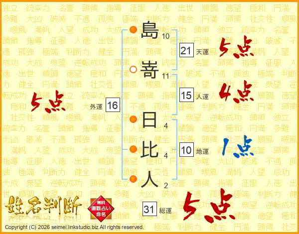 島嵜日比人さんの総運は31画の5点!