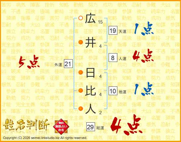 広(15画)井(4画) 日(4画)比(4画)人(2画)