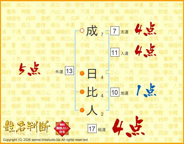 成日比人さんの総運は17画の4点!