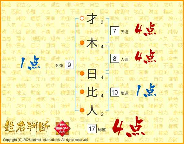 才木日比人さんの総運は17画の4点!