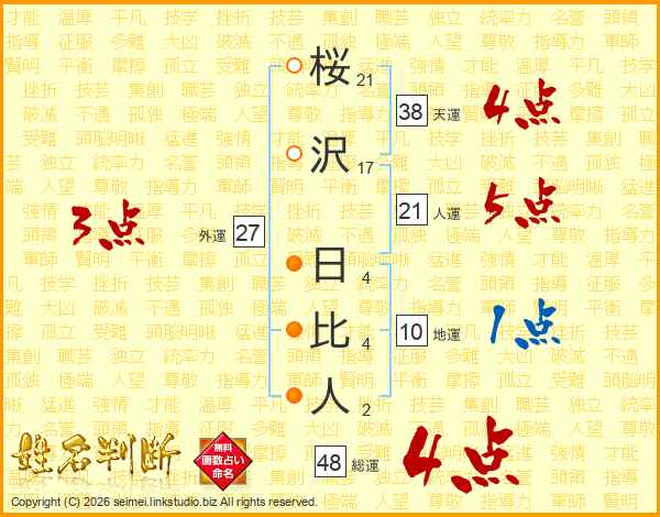 桜沢日比人さんの天運は38画の4点!