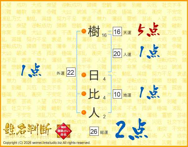 樹日比人さんの総運は26画の2点!