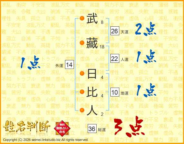 武(8画)藏(18画) 日(4画)比(4画)人(2画)