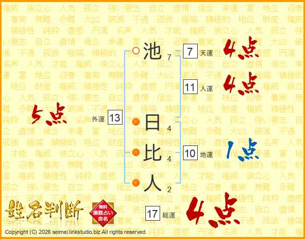 池日比人さんの総運は17画の4点!