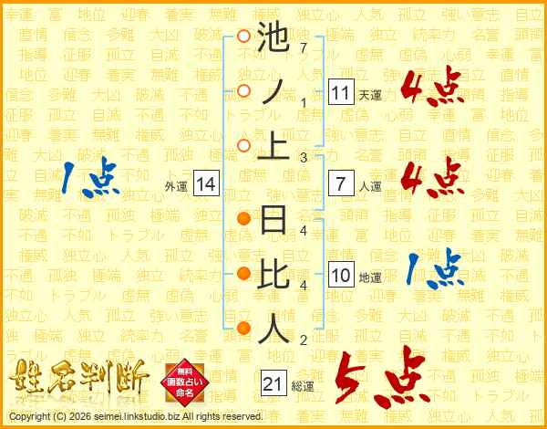 池(7画)ノ(1画)上(3画) 日(4画)比(4画)人(2画)