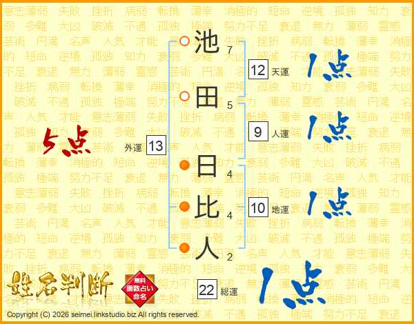 池(7画)田(5画) 日(4画)比(4画)人(2画)