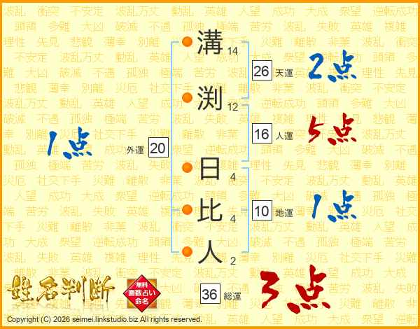 溝渕日比人さんの総運は36画の3点!