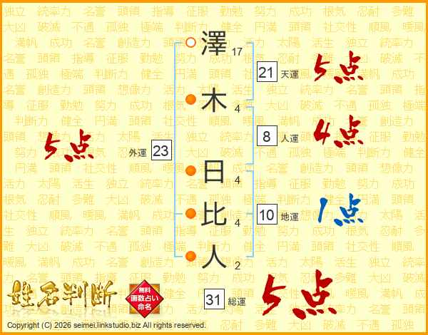 澤木日比人さんの総運は31画の5点!