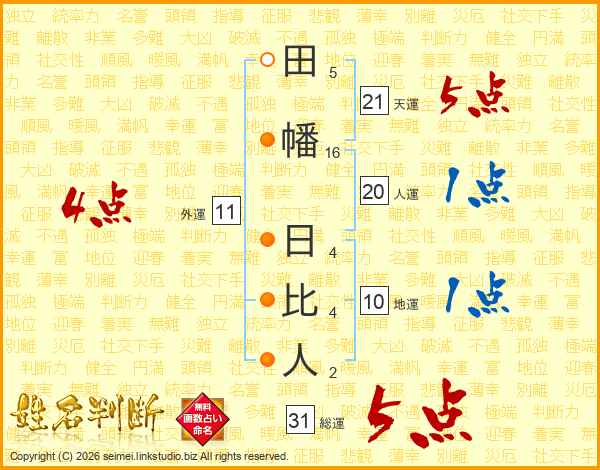 田幡日比人さんの総運は31画の5点!