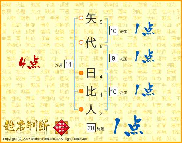 矢(5画)代(5画) 日(4画)比(4画)人(2画)