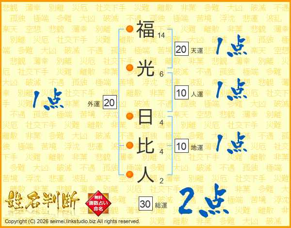 福(14画)光(6画) 日(4画)比(4画)人(2画)