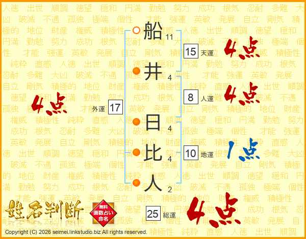 船(11画)井(4画) 日(4画)比(4画)人(2画)