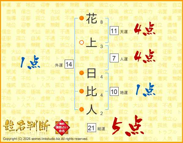 花上日比人さんの総運は21画の5点!