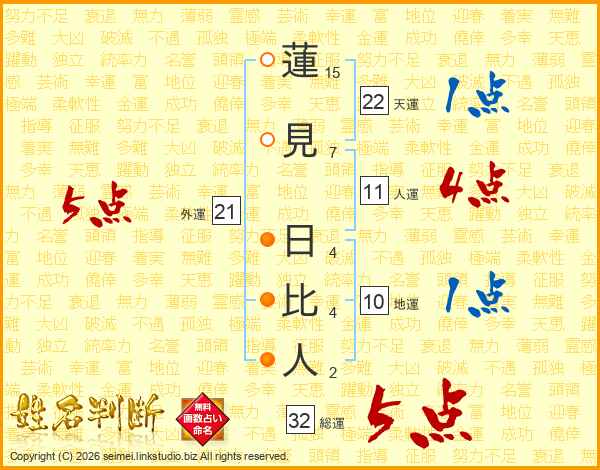 蓮見日比人さんの総運は32画の5点!