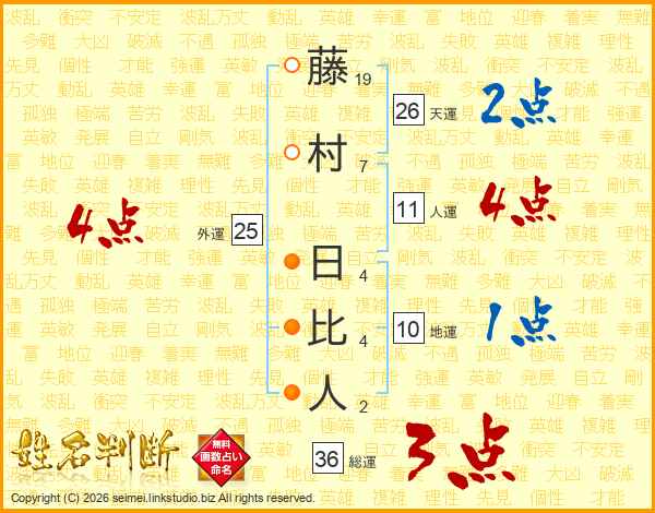藤村日比人さんの天運は26画の2点!