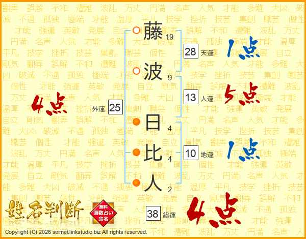 藤波日比人さんの総運は38画の4点!