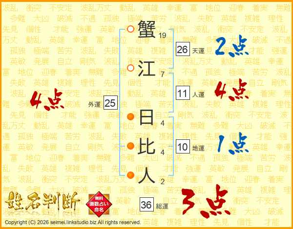 蟹江日比人さんの総運は36画の3点!