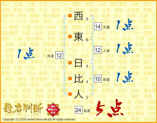西東日比人さんの総運は24画の5点!