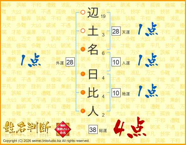 辺(19画)土(3画)名(6画) 日(4画)比(4画)人(2画)