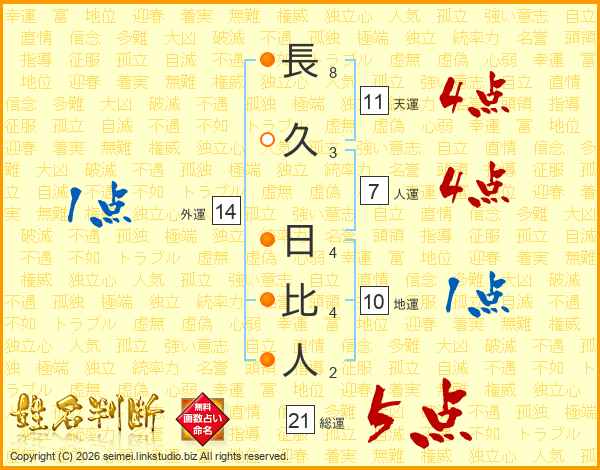 長(8画)久(3画) 日(4画)比(4画)人(2画)