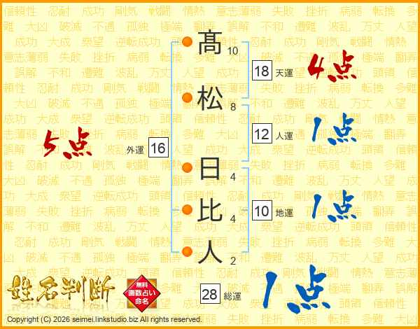 髙松日比人さんの総運は28画の1点!