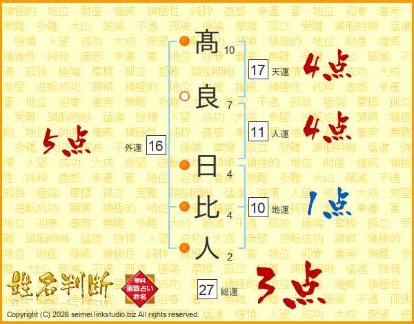 髙良日比人さんの天運は17画の4点!