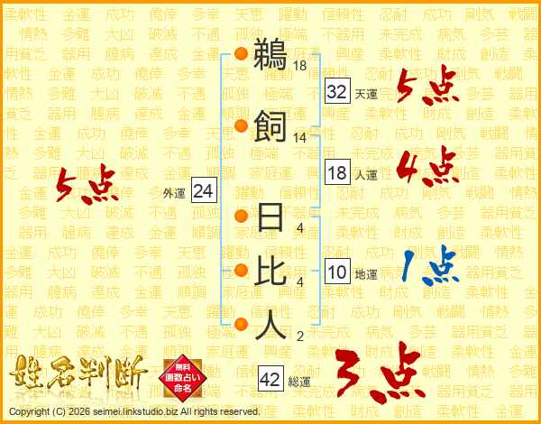 鵜飼日比人さんの総運は42画の3点!
