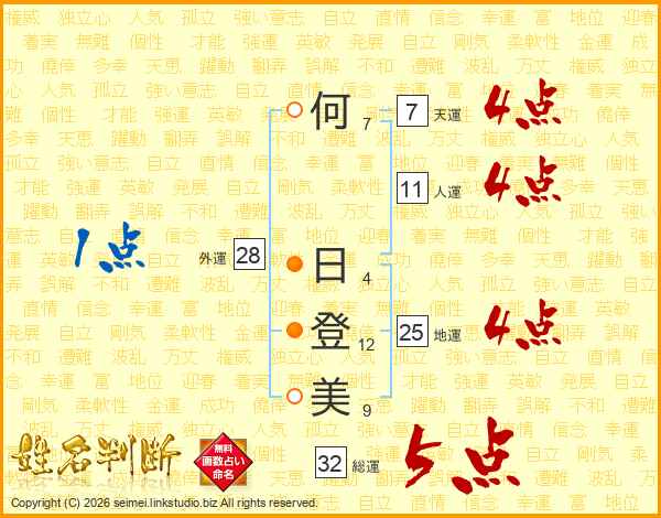 何日登美さんの総運は32画の5点!