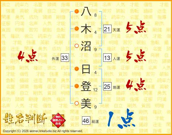 八木沼日登美さんの総運は46画の1点!
