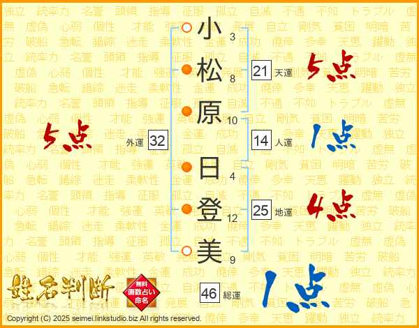 小松原日登美さんの天運は21画の5点!