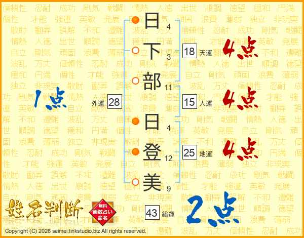 日(4画)下(3画)部(11画) 日(4画)登(12画)美(9画)