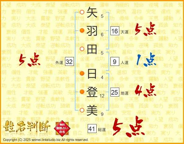 矢羽田日登美さんの地運は25画の4点!
