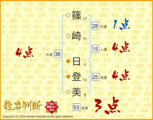 篠崎日登美さんの外運は38画の4点!